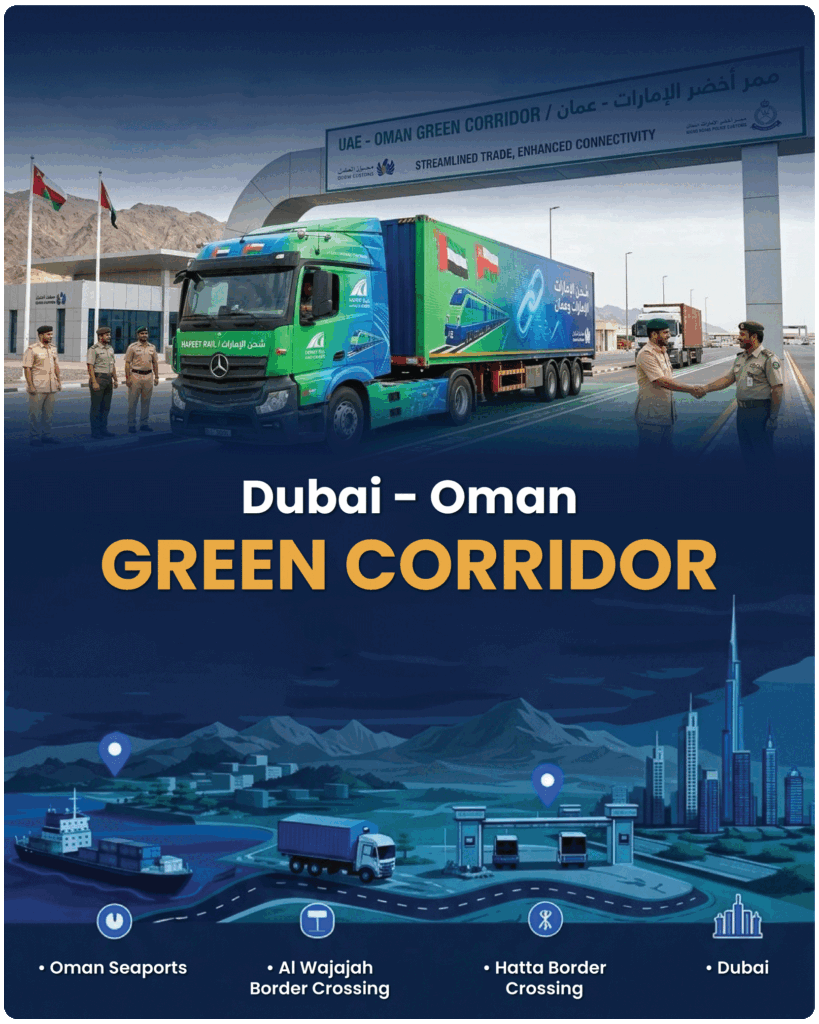The Green Corridor allows goods coming from Oman to move quickly into Dubai with fewer delays, improving trade and logistics efficiency.